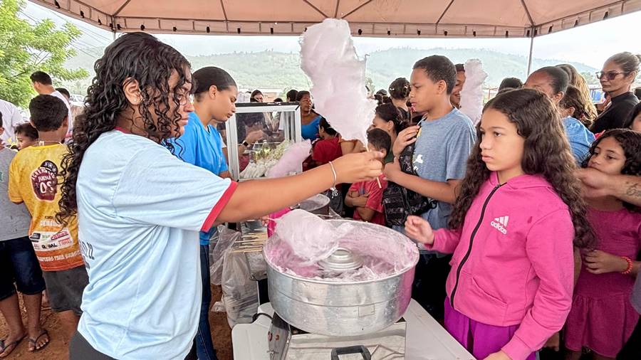 Entre os pequenos, a animação era visível. O estudante Isac Milhomem, de 12 anos, não escondeu a empolgação. “Eu vim aqui brincar no pular-pula, jogar futebol, comi pipoca, tomei refrigerante e eu estou muito feliz e ainda vou ganhar brinquedo”.